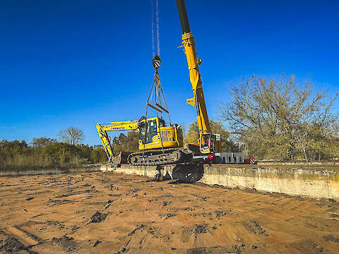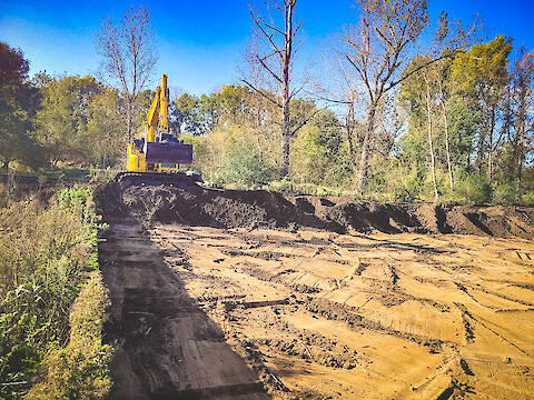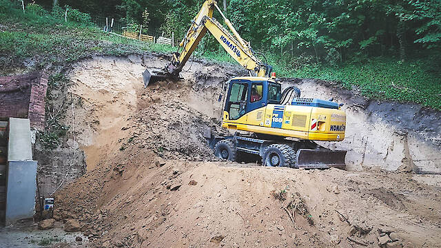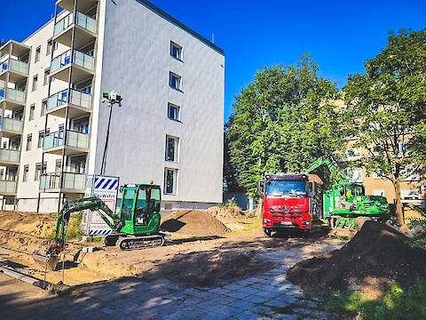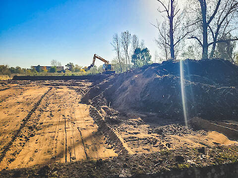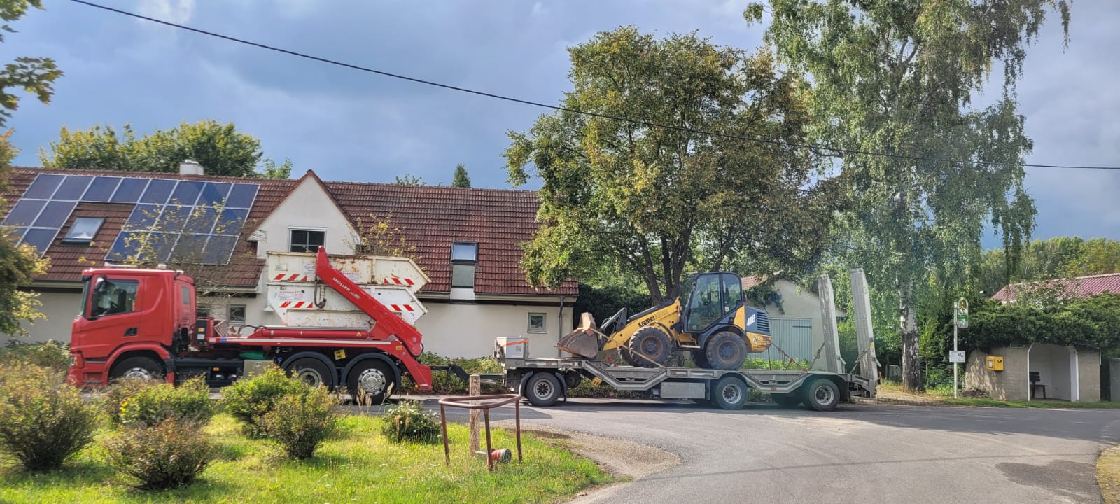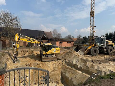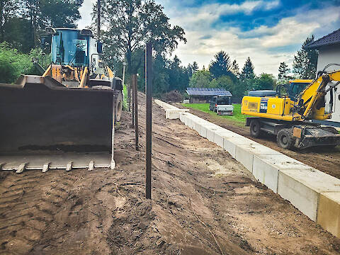 Unsere Dienstleistungen beginnen von der Urbarmachung und dem Wurzelziehen, einschließlich deren Entsorgung, bis hin zur Baufeldherrichtung, wie Oberboden abtragen, verladen, abfahren und entsorgen. Aber auch den Boden auf Halde zu lagern und bspw. mit Siebleistung vor Ort (Mengenabhängigkeit = Rentabilität) können wir Ihnen als weiter Option anbieten. Auch den nächsten Schritt, die Gründung, also Vorbereitung der Untergrundfläche bis zur Bodenplatte, dürfen Sie vertrauensvoll in unsere Hände legen. Heißt, der eventuelle Abtransport (siehe zuvor) bis hin zur Anlieferung von Kiesen und Frostschutz, dem Verdichten und der Übergabe einer vorbereiteten nivellierten Fläche für die Bodenplatte, ist in unserem Portfolio enthalten.